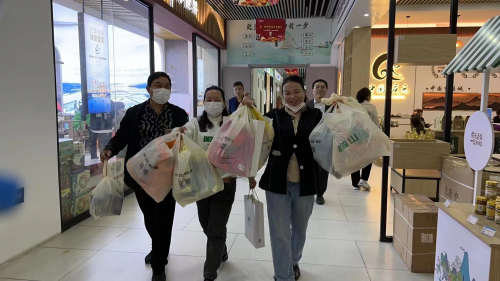 第二天,山海优选的会员们齐聚杭州勾庄山海共富农优产品展销窗口,实地参观调研。当他们走进浙江山区26县各县域馆时,看到这么多来自各地的农优特产品时极为震撼,忍不住就下手购买,并纷纷表示看了现场后,更有信心把来自各地的农优产品推销出去,为农民创收贡献自己的力量。