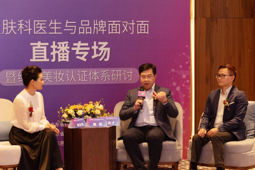 在皮肤科医生创新科普直播专场阶段,吉米首席品牌官金凤作为此次出席交流会的品牌代表,现场与中山大学附属第三医院主任医师赖维、中山大学附属第六医院主任医师吴良才进行面对面对话,双方结合[纯净美妆]话题展开一系列的探讨。
