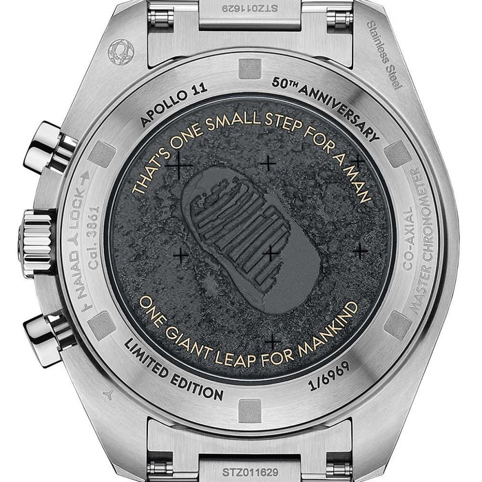面对着全面换装3861机芯的新超霸表,选择其实是一门学问。不妨从一款纪念性表开始,42毫米至臻天文台计时表之阿波罗11号登月50周年特别款:表圈由抛光黑色氧化锆陶瓷制成,测速刻度则由 OMEGA Ceragold® 技术打造。灰黑色亮漆表盘上的小时刻度和指针均由与外圈材质相同的 Moonshine 18K金制成,而中央计时秒针则采用PVD技术覆以 Moonshine K金涂层。11点位镶贴特别时标,9点位则设有别具一格的 Moonshine 18K金小表盘,并采用激光技术雕刻出巴兹·奥尔德林踏上月球表面的影像。表背采用 NAIAD LOCK 技术?,确保雕刻文字始终保持正确?的位置?,而蓝宝石玻璃表背下方?的徽章上采用激光雕刻出宇航员巴?兹?·奥尔德林?的登月脚印?。以镀Moonshine 18K金字母展现宇航员?的名言?:?「?THAT?’S ONE SMALL STEP FOR A MAN?」?(?这是个人?的?一小步?)和「?ONE GIANT LEAP FOR MANKIND?」?(?但却是人类?的?一大步?)?。在同价位的表款中,它十分地独特而少见。