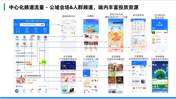 比如,8大“黄金流量位”均向商家开放——搜索框、首页应用中心、首页消息提醒、首页推荐卡片、支付成功页、生活号等,为商家提供免费流量支持,帮助商家高效获客。