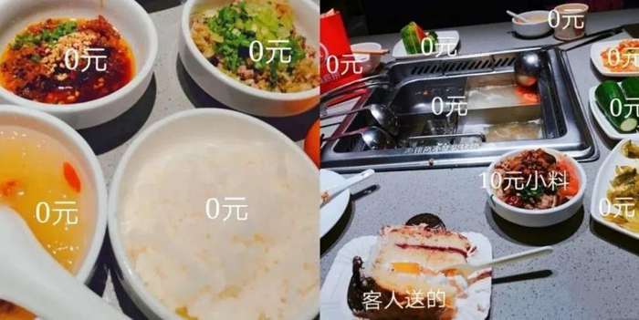 一开始,服务至上的海底捞其实允许自带食材,餐厅只需要留存食材的一小部分,以免出现问题。服务员甚至还会热心地问你要不要处理,帮你往锅里下菜。但不知道什么时候起,这为一些人薅羊毛打开方便之门。先是一个人在海底捞只点四个清水锅、一份捞面和自选小料,合计17块钱。剩下的全靠服务员送,他还狂吃海底捞原本用来提升服务质量的免费小菜,走的时候打包了不少零食。