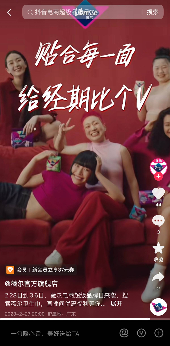 月经不隐藏,抖音电商超级品牌日携薇尔一起给经期比个V