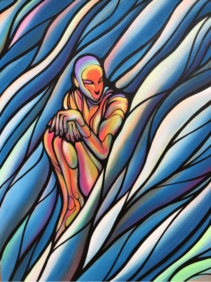 宇宙計畫延展出的《男孩女孩》系列沿用宇宙计划的色彩风格,用更拟人的宇宙花纹去创作表达。而“男孩女孩”如在画作中所传达的角色一样,被高纯度的色彩包裹着、稀释着,构建出童真般安静的人物形象,将成年观众与童年视角的画作关联在一起,从而引发大家产生思考。