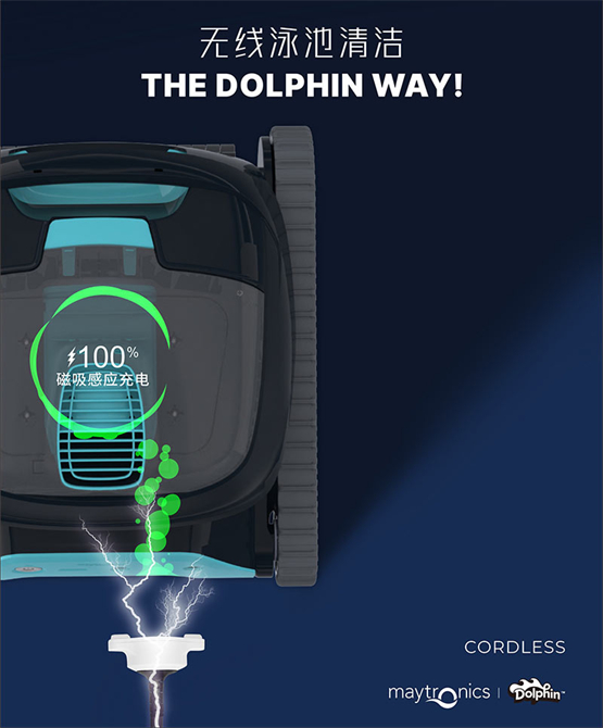 为提升用户智能清洁体验,近期Maytronics海豚品牌又重磅推出了无线款泳池吸污机(LIBERTY200和LIBERTY300)。广州千叶泳池设备第一时间将其引进到了中国市场。Maytronics海豚无线泳池吸污机采用了全新无插孔设计,直接磁吸到位,感应充电,安全防水;履带驱动,强劲有力,并搭配简单易用过滤篮,清扫更彻底。