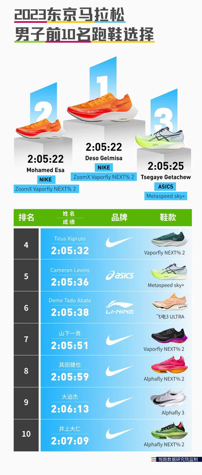 从2019年马拉松国际运动员签约中国体育装备品牌开始,到2022年,李宁签约的25岁的埃塞俄比亚小伙德迈·塔杜·阿巴特(Deme Tadu ABATE)脚踏飞电3ULTRA打破国际巨头对大满贯赛事领奖台的垄断,首次跻身世界巅峰,创造了中国跑鞋的最快纪录,再到刚刚结束的东京马拉松上,时隔五个月阿巴特再次成功将个人最快用时缩短35秒。
