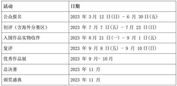 本次大奖公众报名期限为2023年3月12日至2023年6月30日24时(北京时间), 其他时间概不受理。组委会不收取报名费用,但由参赛所产生的物流、保险、清关等费用由参赛者自理。