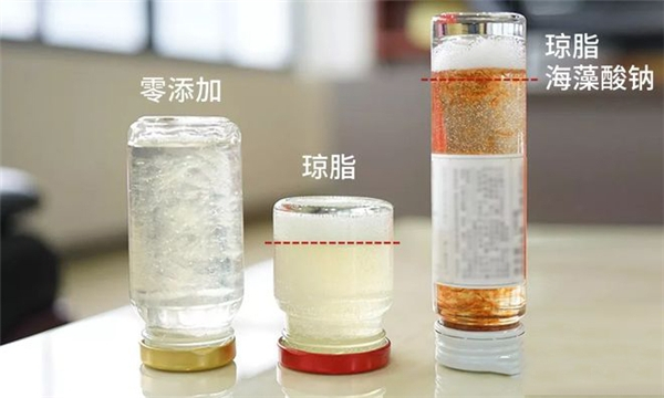 更有商家在即食燕窝中添加琼脂、海藻酸钠等。如某品牌“枸杞风味燕窝饮”的配料是纯化水、红枣、冰糖、琼脂、枸杞粉、海藻酸钠、燕窝。不仅燕窝排在了最后一位,还添加了琼脂、海藻酸钠等食品添加剂。这样的产品可以说和燕窝没太大关系,更像是一瓶燕窝味的“胶状糖水”。