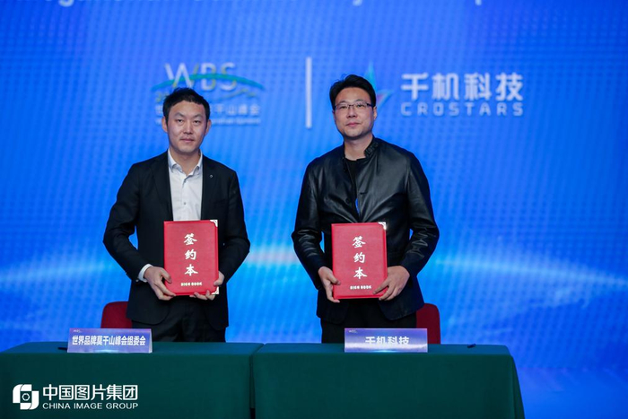 中国经济信息社副总裁梁智勇(左)和千机科技集团副董事长杨哲代表双方签约,旨在通过建立密切、长久和深入的战略合作伙伴关系,充分发挥并整合各自优势,在共同打造品牌新型传播方式、世界地标上的中国品牌、上市公司ESG披露、助力重大活动传播等多个领域开展强强合作,实现资源共享、优势互补,共同促进双方业务的延伸和发展。