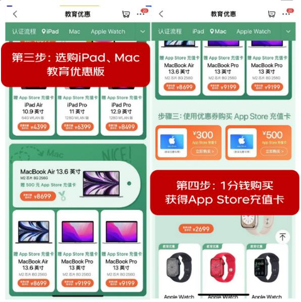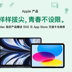 想要购买iPad和MacBook的学生党推荐首选京东Apple产品教育优惠活动,记得认证学生身份,获赠App Store充值卡更优惠。