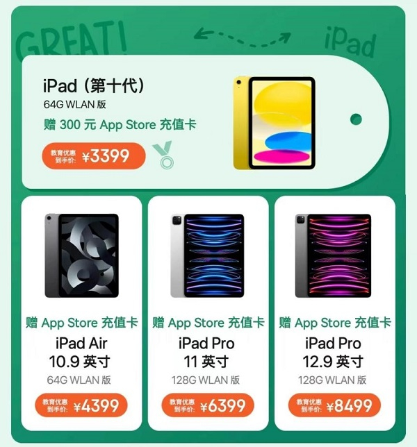 学生党买iPad认准京东 教育优惠专享低价还送300元App Store充值卡
