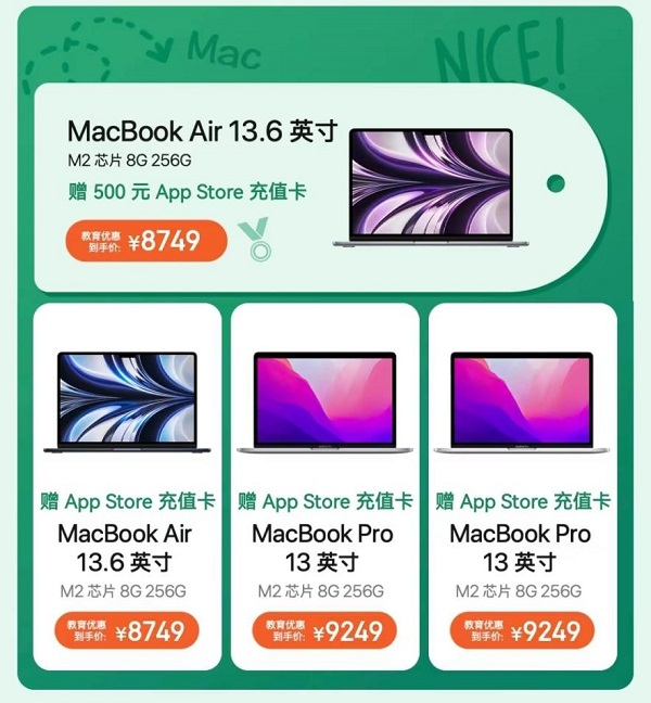 对于学生群体来说,性能强大的MacBook也是学习好帮手。MacBook Air 13.6英寸M2芯片8G 256G午夜色京东教育优惠价格8749元;MacBook Pro 13英寸M2芯片8G 256G深灰色京东教育优惠价格9249元,购买上述机型可获赠500元App Store充值卡兑换券,价格比官网更低,入手更超值。