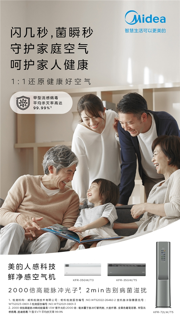 美的鲜净感空气机:有效杀菌,打造健康空气防护盾