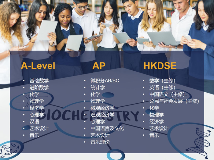 到了G10的第二学期,学生们可以从A-Level、AP或HKDSE(香港中学文凭考试)中选择各自的升学通路,以及在G11-12(高二-高三)学习的具体课程。无论学生是计划申请英美等国外名校,又或是选择报读中国知名大学,不同升学通道下都涵盖着多项学科的选择机会以及同样充分的全球大学入学准备,以及学生未来所选职业的学习需求包括数学、科学、人文和表演艺术。通过为学生提供多种课程选择,能够使他们能在专注理想学业深造之余,完成大学专业又或是未来职业的互通互融。