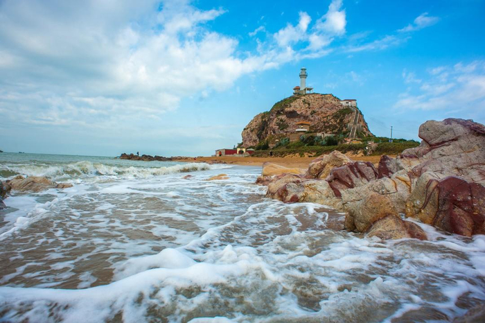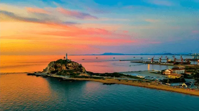 如果现在前去,你能看到鱼鳞洲上的植被苍翠碧绿,生机盎然。海面上碧波万顷,不时会有小船穿梭在海上,海浪扑打在石滩上,溅起一堆雪白的浪花。看着辽阔的海与那伫立的灯塔,也许你会感受到生活纯粹的美好。
