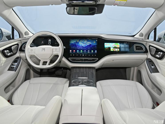 内饰方面,新车方向盘采用双色的配色,按键相对简易。新车与飞凡R7一样,拥有中国品牌最大的43英寸全场景智慧屏以及8英寸后排互动娱乐屏。RISINGMAX3+1科技娱乐舱,无疑是飞凡F7打动消费者的一大利器,通过中国品牌最大的43英寸全场景智慧屏霸和8英寸后排互动娱乐屏,将前后空间巧妙区隔,带来行业首创的双向双区独立影院体验,配合算力充足的高通骁龙8155芯片。