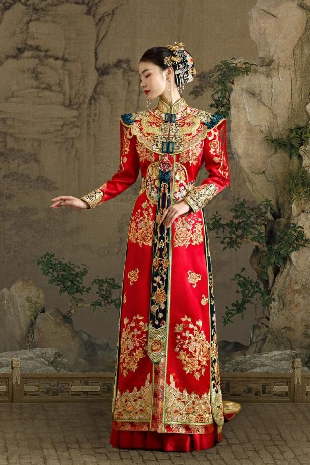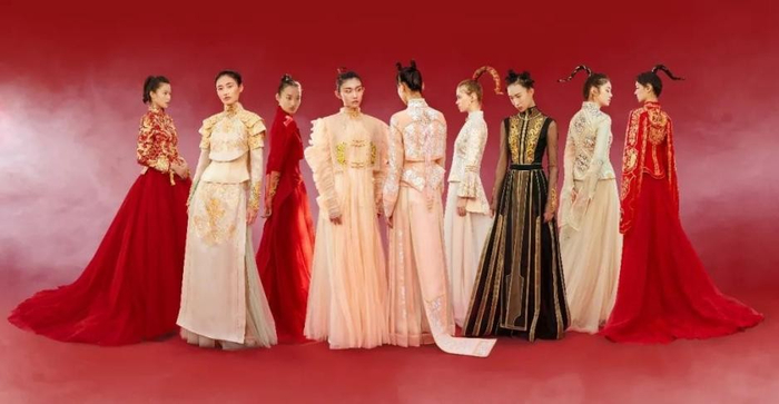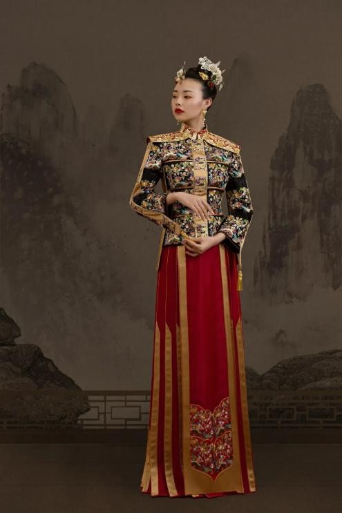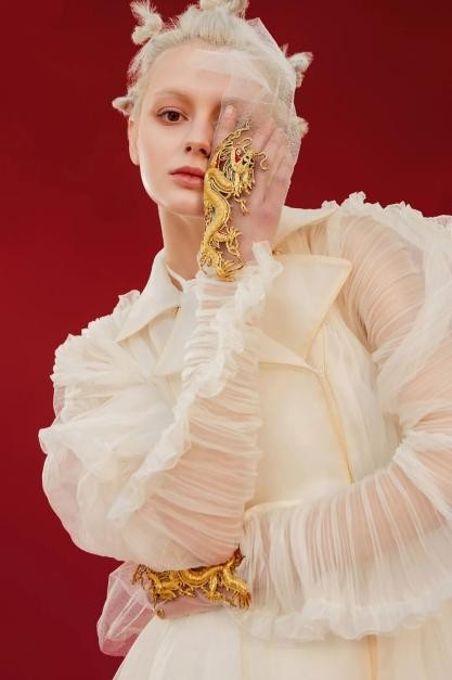 中国红,有着诗情画意和凝聚自然万物的力量。古代称南红为“赤琼”,即红色的玉。天玺·中国礼服,从南红石中提取天玺色——赤玉红,并将这份独属于东方文化的浪漫与想象,融入到服饰色彩之中,赋予中式礼服张力及永恒的力量。