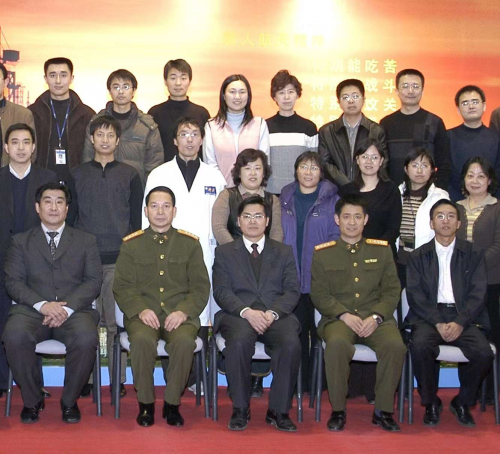 本世纪初,于登云院士(一排左三)与解放军航天员大队首任大队长申行运将军(一排左二)、航天员聂海胜将军(一排左四)