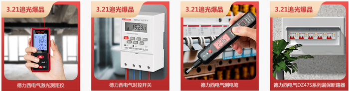 4大直营旗舰店联合首发“追光爆品”,天猫、京东、抖音、拼多多搜索“德力西电气旗舰店”,即可参与缤纷抽奖活动,更可关注店铺直播间参与有奖互动。
