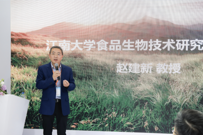 OneHealth在实现产学研结合方面始终保持积极态度,此次展会邀请了江南大学食品生物技术研究中心主任赵建新教授,赵教授于会上表示:江南大学通过在食品微生物深耕多年的经验,近20年延伸至益生菌领域的研究,在此机缘与诺维信开展了研究合作。期待藉由与头部企业的合作,将科研结果标准化,将更好的产品带给消费者。