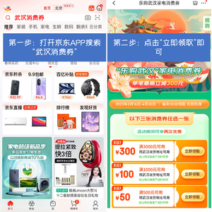 “乐购武汉”家电消费券在京东APP领取 买家电家居产品至高减300元