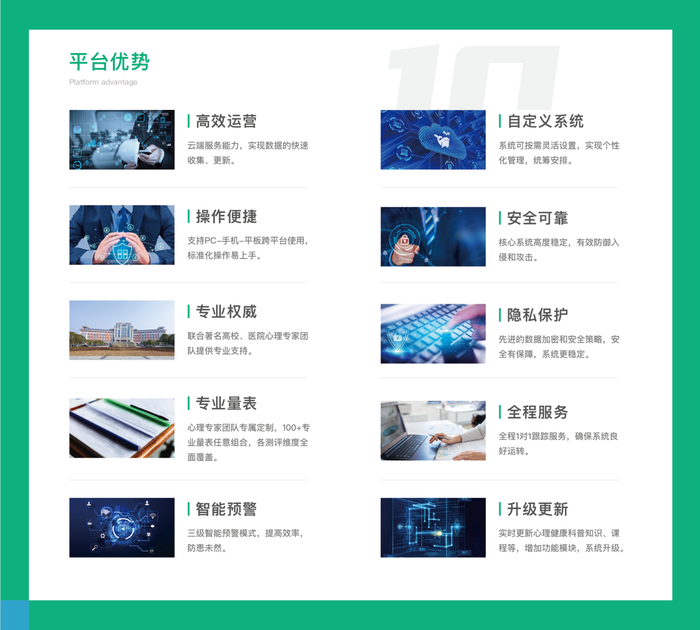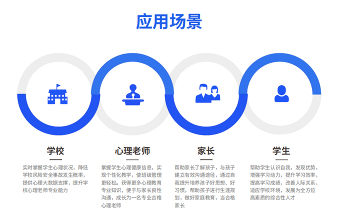 平台通过系统、专业、便捷的学生心理健康教育和服务,帮助学校全面掌握学生的心理健康状况,进行更有针对性的预防、学生心理疏导,提升全体学生的心理健康水平,预防学生心理危机事件。