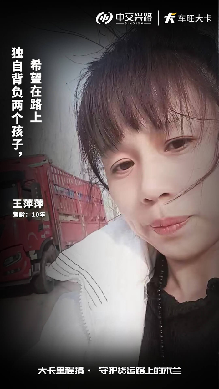 王萍萍是河北衡水人,几年前,父亲不幸罹患癌症,为了治病,她花光了家里所有的积蓄,还欠了几十万的外债,不仅没有救回父亲,丈夫又在此刻向她提出离婚,并丢下两个年幼的儿子。上有年迈的母亲,下有两个嗷嗷待哺的孩子,原本体质就弱的王萍萍以瘦弱的肩膀,独自担起了养家的责任。她将孩子交给母亲照顾,自己贷款买了一台6.8米高栏货车,这一开,就是8年。