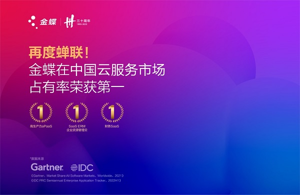 IDC 中国SaaS云服务市场:金蝶再次位居第一!