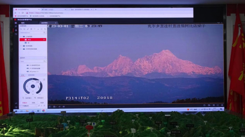 在县级综合指挥平台运用系统上,当操作员打开位于克尔乡宜洼村宜洼组阿比店梁子上的双光谱视频监控进行操作时,记者清晰看见远处恰朗多吉神山上的皑皑白雪以及山下茫茫林海。随着镜头拉近,监测点上的红旗在山风中猎猎作响也轻易可见。当操作员转动监控摄像头时,画面一转,近处的山峰及林区映入眼帘,郁郁葱葱的森林展现出蓬勃生机。