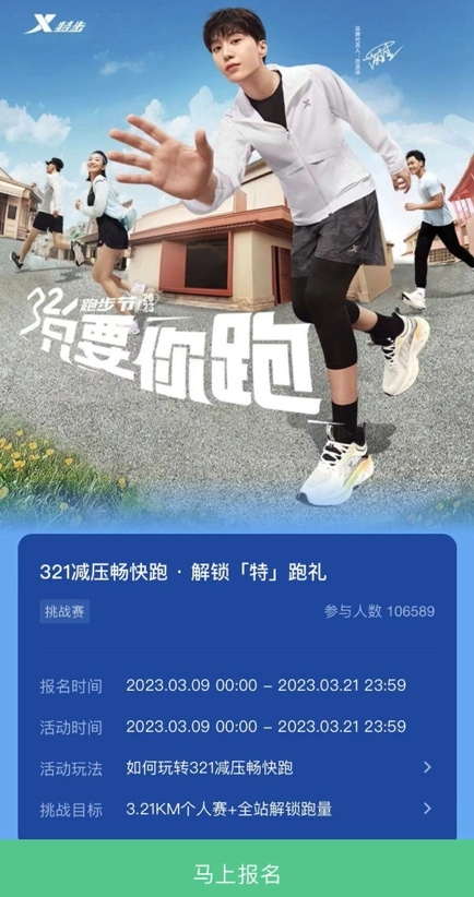 2023,大众或许比往年更渴望通过健康跑来一次酣畅淋漓的释放,让生活再度充满活力,特步找到了与大众“对话”的新方向。今年3月,特步正式拉开「321跑步节」的帷幕,这个在跑圈大热的跑步节IP已持续八个年头。品牌代言人范丞丞的跑步独白tvc用“只要你跑“的态度号召更多人开始跑步,爱上跑步,用无惧困难、敢于奔跑的初心去创造更多人生可能。