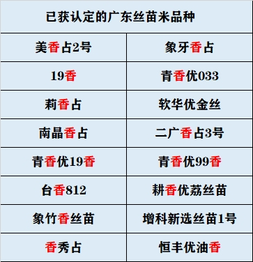 “美香占2号”“象牙香占”“南晶香占”“19香”“青香优19香”“青香优99香”……大多数广东丝苗米品种均以“香”为名。