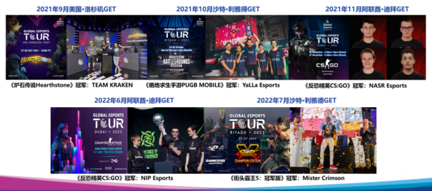 全球电子竞技巡回赛(GET)是全球电子竞技联合会(GEF)的旗舰赛事之一,自2021年以来,已经在美国洛杉矶、沙特利雅得、阿联酋迪拜等地成功举办五届赛事。