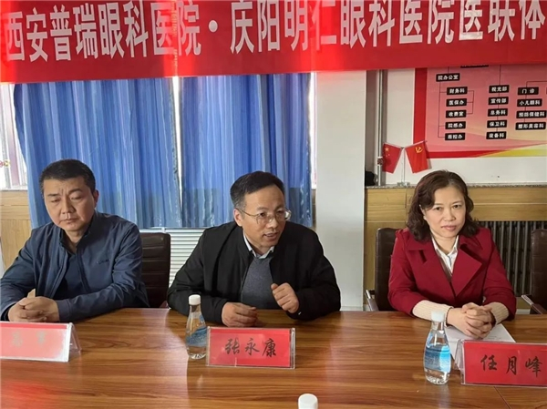 在授牌仪式中,环县申大眼科医院院领导表示,此次医联体签约揭牌将给环县申大眼科医院发展注入新的动能,对加强医院学科建设、人才队伍建设及整体发展起到了重要促进作用。医院也将通过西安普瑞眼科医院的技术帮扶,更好地为环县父老乡亲提供高质量的眼病医疗服务。