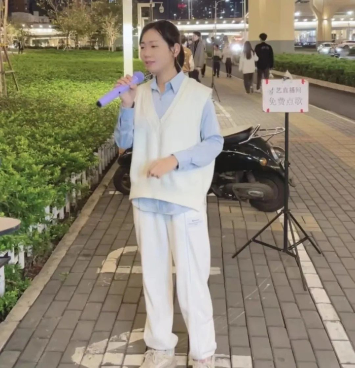 2022年初,娱乐直播火爆,广西的街边、网红大桥下,相继出现了不少主播,边表演才艺边卖货。“我为什么不能试试?”较高的颜值,再加上爱好唱歌,身边的很多朋友打趣,称她是“一个被送外卖耽误的女主播”,小晓于是开始在闲暇时间直播唱歌。