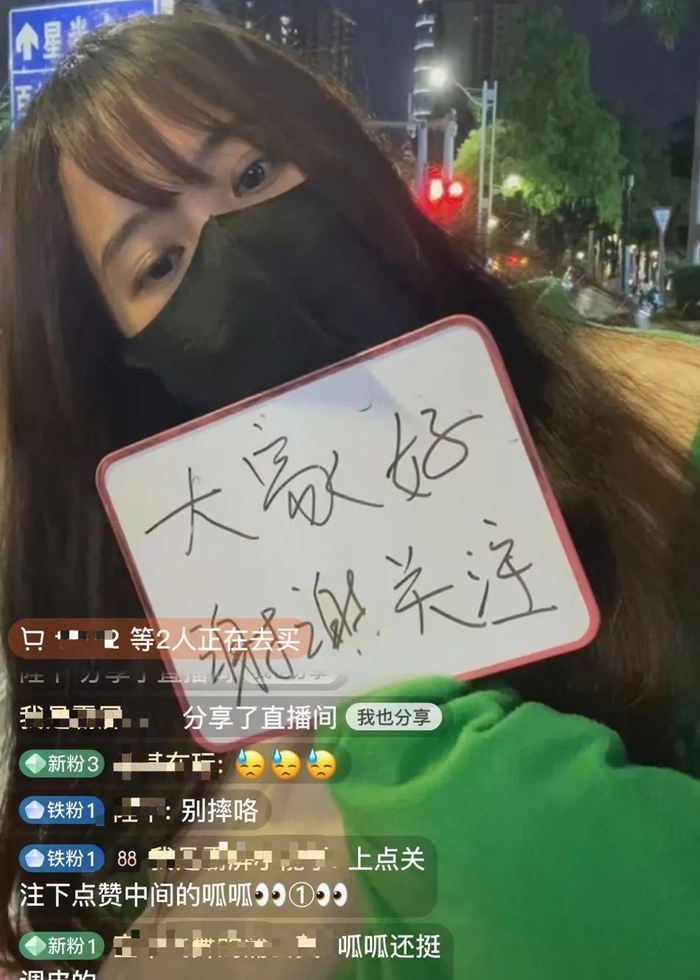 同样在广西,呱呱因为直播摆地摊卖玩偶,也意外撞开了直播的大门。因为幼年的疾病,无法正常说话的呱呱只能对着镜头举起纸板,将自己想说的话写在上面。不少观众带着猎奇心理走进直播间,却被这个00后女孩满满的元气打动了。