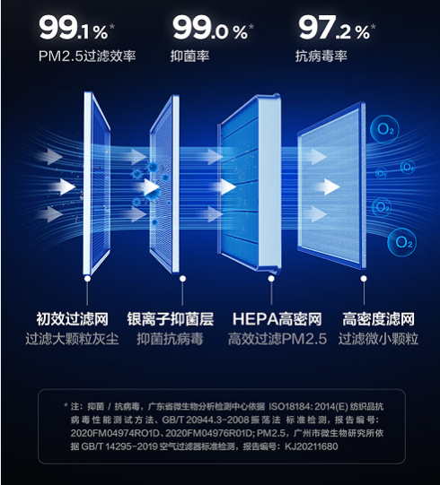 而当室外空气质量不佳,不方便开窗或者引入新风时,TCL新风空调小蓝翼Ⅲ的内循环净化模式针对室内空气进行循环净化,可以将室内污浊空气经过滤芯净化过滤后,变成清洁空气重新输出,居家亦可享受新鲜健康空气。根据官方数据显示,TCL新风空调小蓝翼Ⅲ的四重净化过滤系统对PM2.5的过滤效率高达99.1%,抑菌率和抗病毒率分别达到99.0%和97.2%。