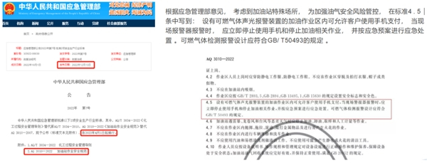 一个标准的加油站,不仅设备设施要齐全,而且在安全作业规范方面也要到位。为筑牢加油站安全之墙,应急管理部日前批准发布AQ 3010-2022《加油站作业安全规范》,重点对加油站作业提出了严格的要求,加油站新规中写到:设有可燃气体声光报警装置的加油作业区内可允许客户使用手机支付,当现场报警器报警时,应立即停止手机和停止加油相关作业,并按应急预案进行应急处置。此新规将替代AQ3010-2007,于2023年4月1日起正式实施。