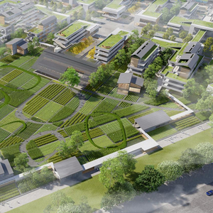 根据岭南气候、场地生态资源及建筑肌理的演进,设计关注个性化教育与学生的健康成长,营造了学习与成长的情与境。共分七大主题,分别为文体浮园、纵横绿轴、仪式感入口广场、回廊里巷、立体书院、耕读校园、田园居所。