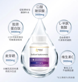 口服玻尿酸3000mg,促胶原新生嫩弹补水