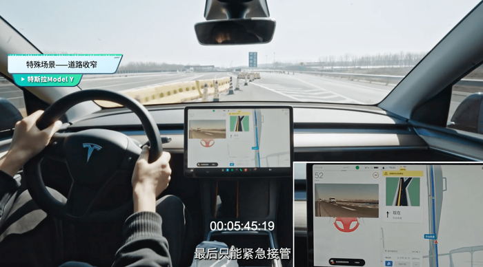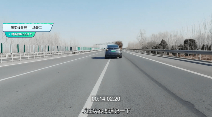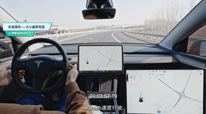 特斯拉Model Y 方面,它在面对常规的直道巡航时,表现也较为出色,但是一旦进入匝道内,它的策略就略显不够明智,相比来说不如小鹏G9采用的方案科学。