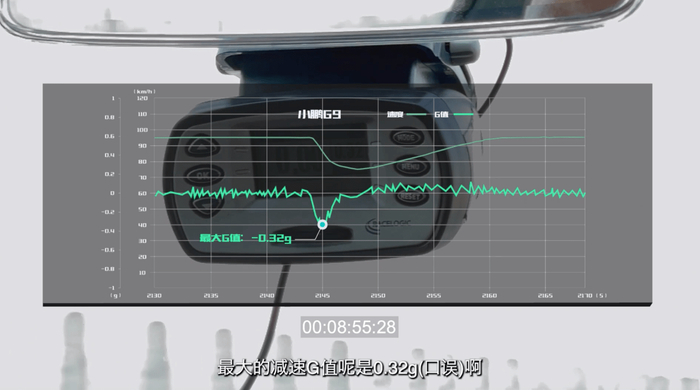 在纵向控制方面,小鹏G9在遇到突然Cut-in(指相邻车道车辆切入自车车道)的车辆时,其刹车体感要明显比Model Y更舒适。后者减速G值(重力加速度)达到了0.53G,车内有明显的急刹感。小鹏G9在体感上更优,减速G值为0.32G,属于人体舒适区间范畴。