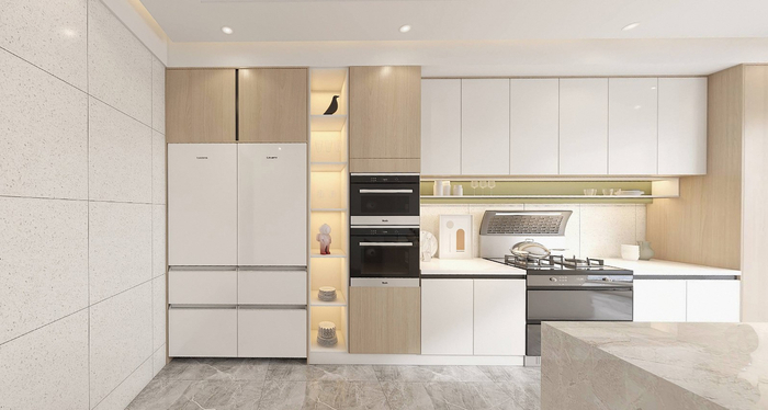 冰箱作为厨房里的“大件”,在厨居美学上起着至关重要的作用。越来越多设计师在其设计方案中思考冰箱与厨居设计的关系。选择传统冰箱时,一般会有两个问题:一是因为散热问题和开门问题,冰箱左右需要“闪缝”,很不美观;二是越来越多家庭倾向于购买大容量冰箱,但冰箱容量大,体积就更大,容易带来空间拥挤、机身前凸等问题。卡萨帝作为国际高端家电品牌,更是行业风向标,不但率先实现“零嵌”,还进一步重塑嵌入标准,始终坚持设计导向,持续升级场景化解决方案。