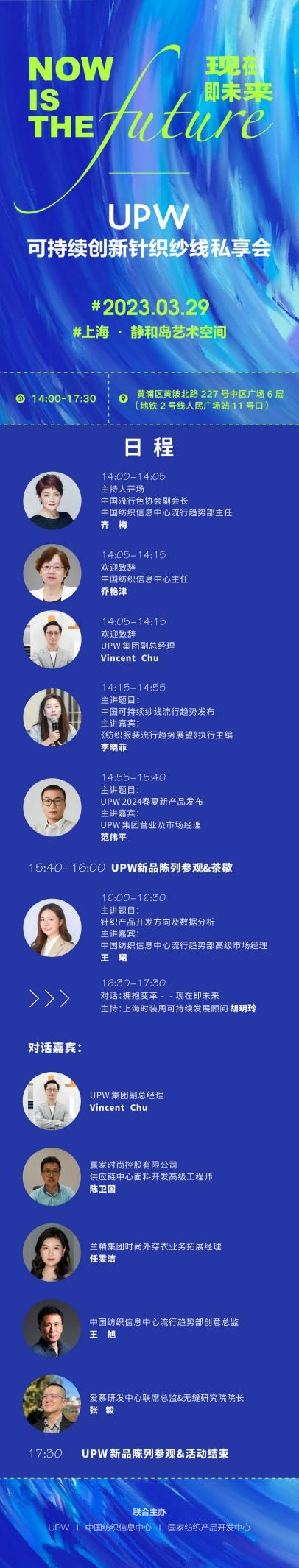 本次活动由UPW集团、中国纺织信息中心、国家纺织产品开发中心联合主办。届时,中国纺织信息中心主任乔艳津,UPW集团副总经理 Vincent Chu将出席活动并致辞,中国流行色协会副会长、中国纺织信息中心流行趋势部主任齐梅主持。