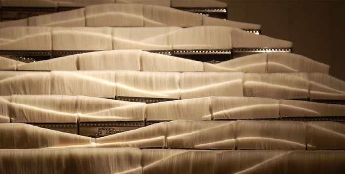 赵俊皓是西安青年雕塑群体里比较活跃的一位,是我们雕塑院的特聘雕塑家。他的作品,一直以来都以一种较为独特的视角在表达自己的主观世界。他之前创作了大量具有个人风格面貌的石雕作品,大都是运用传统创作方式,风格简约,结合自己对文化的理解,经过巧妙构思后,成为具有人文意识的当代造型语言的体现,能够感受到俊皓非常敏感的内心世界。而俊皓本次在首尔举办的个展,整体呈现了不同于以往的形式探索,和不拘泥于传统的抽象样式,却又能真切的感受到中国传统文化根植在他的审美理念里,唯美又独辟蹊径的形式。虽遗憾不能亲临现场,但从他发来的作品照片里,窥一斑而知全豹,欣然感悟到他全新的创作理念。从之前硬质的石材的创作,到今天他开始尝试新材料的使用,那些很普通又出人意料的材料,诸如柔软的毛笔,排刷,宣纸等,似乎也暗示了俊皓从一个充满棱角的年轻小伙,蜕变成一位内心柔软的父亲。透过事物坚硬的外表,洞悉到山山水水中那生命的柔软。这些日常生活中信手拈来的材料,被他重新解构,重新排列组合,消解了具象的物体特征,又使他们统一于作者所赋予的特殊结构里,从而将一些不具备任何感情或喜恶的物象,赋予了新的内涵。比如排刷所构成的那副山水画,观者第一眼所见一定不是一个个独立的排刷,却是那层峦叠嶂、银装素裹的群山,物品的原属性被重新赋能,散发出浓郁的中华传统文化的深邃内涵。又比如毛笔悬空,略加修剪的长卷,巧妙运用鬃毛种类不同而显现的不同颜色,营造群山远近虚实,高低错落的景深,以最传统的物件,凸显最传统的意境,但又是一种全新的呈现形式。种种风格上的大胆尝试,给人以眼前一亮的感觉。我想,这次展览应该是俊皓一次重要的创作理念蜕变,希望他能够在今后的艺术道路上,披荆斩棘,一路冲向自己更好的未来!