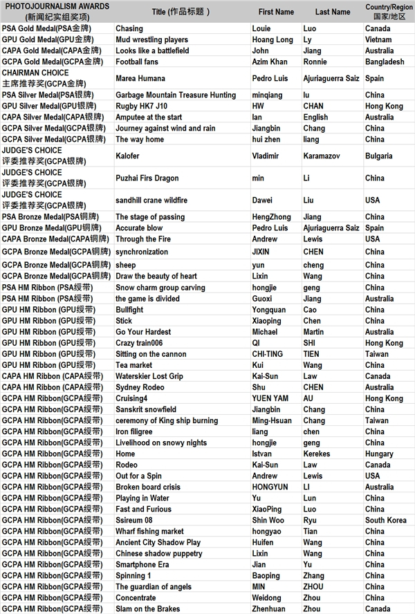 美国摄影学会PSA金牌(新闻纪实组)