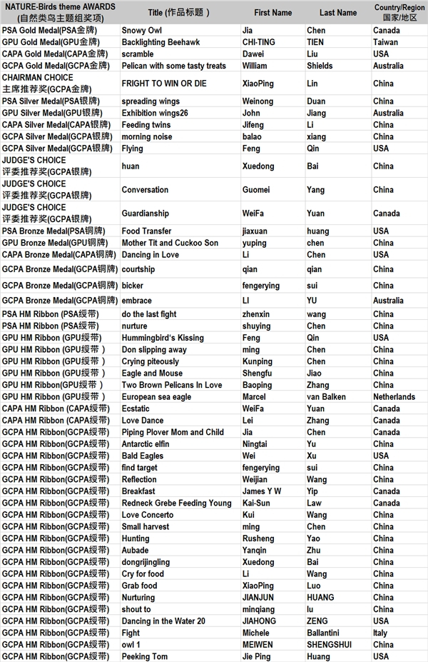 加拿大摄影艺术协会CAPA金牌(自然类鸟主题组)