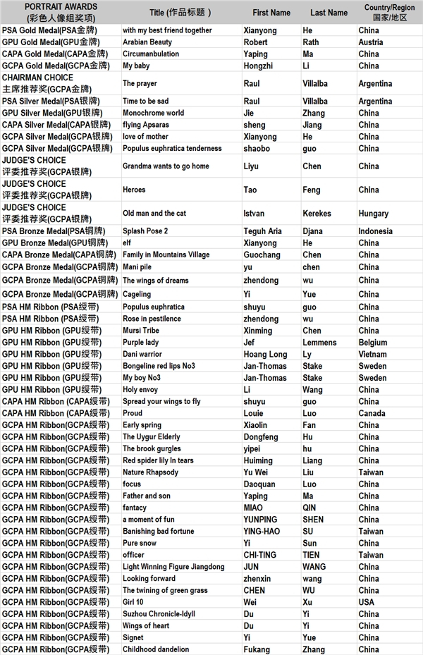 美国摄影学会PSA金牌(彩色人像组)