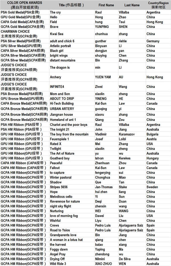 美国摄影学会PSA金牌(彩色开放组)