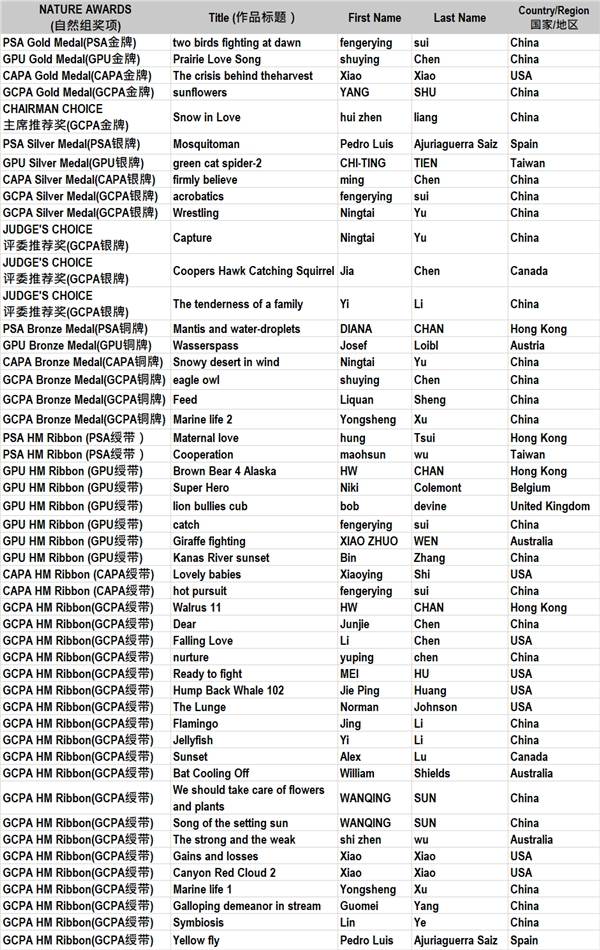 美国摄影学会PSA金牌(自然组)
