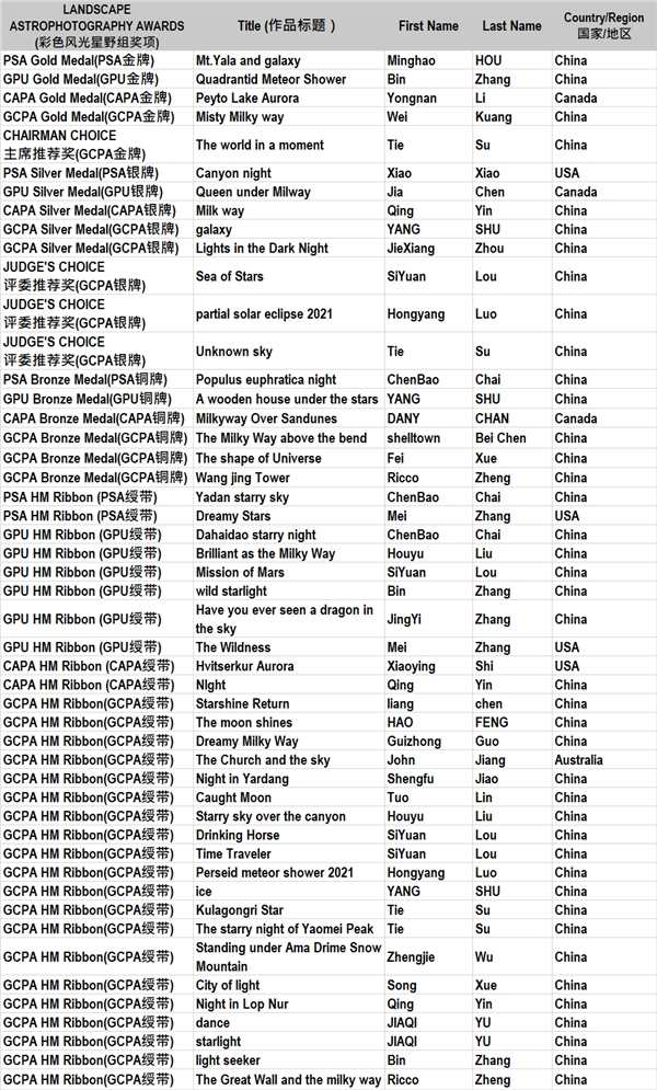 主席推荐奖 | 全球华人摄影联合会GCPA金牌 (彩色风光星野组)