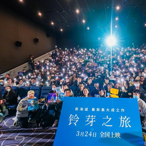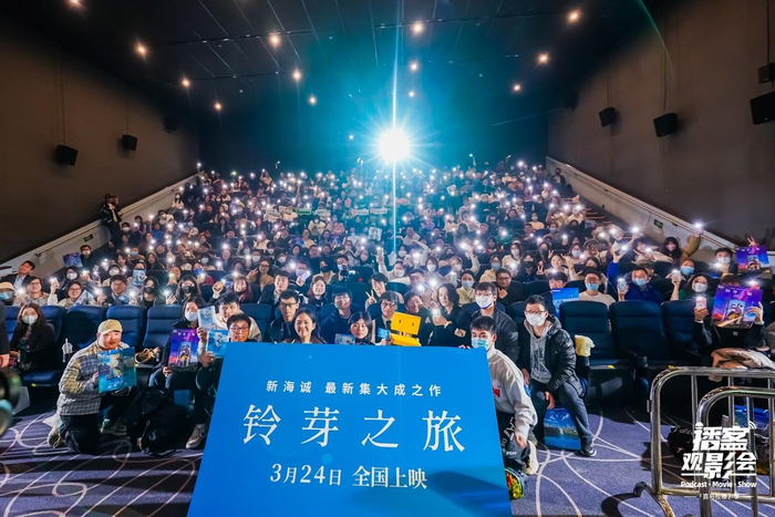 在“播客观影会”活动现场,200多名影迷和新海诚、播客主共同观看电影《铃芽之旅》。《铃芽之旅》是导演新海诚在前作《天气之子》上映三年后的集大成之作,将于3月24日于中国大陆上映。